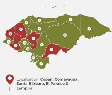 La région : Le Honduras est bordé par la mer des Caraïbes sur la côte nord et par l'océan Pacifique sur la côte sud, à travers le golfe de Fonseca. Le climat varie de tropical dans les basses terres à tempéré dans les montagnes. Le territoire hondurien est principalement constitué de montagnes. Il possède toutes les ressources géographiques, climatiques, géologiques et culturelles pour produire un grand café de spécialité.